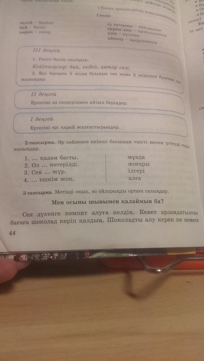 1 ілгері қадам басты. 2 ол жоғары көтерілді. 3 сен алға жүр. 4 мұнда ешкім жоқ.