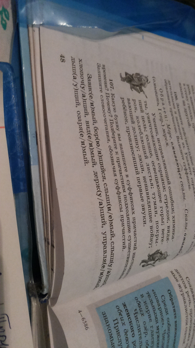 ЗавИсимый, борЯщийся, слышИмый, слышАющий, хлопочУщий, видИмый, держАщий, управляЕмый, дышАющий, озаряЕмый. 5 горонтирована