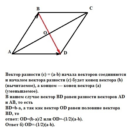 BD=b-a, а так как вектор ОD равен половине вектора BD, то