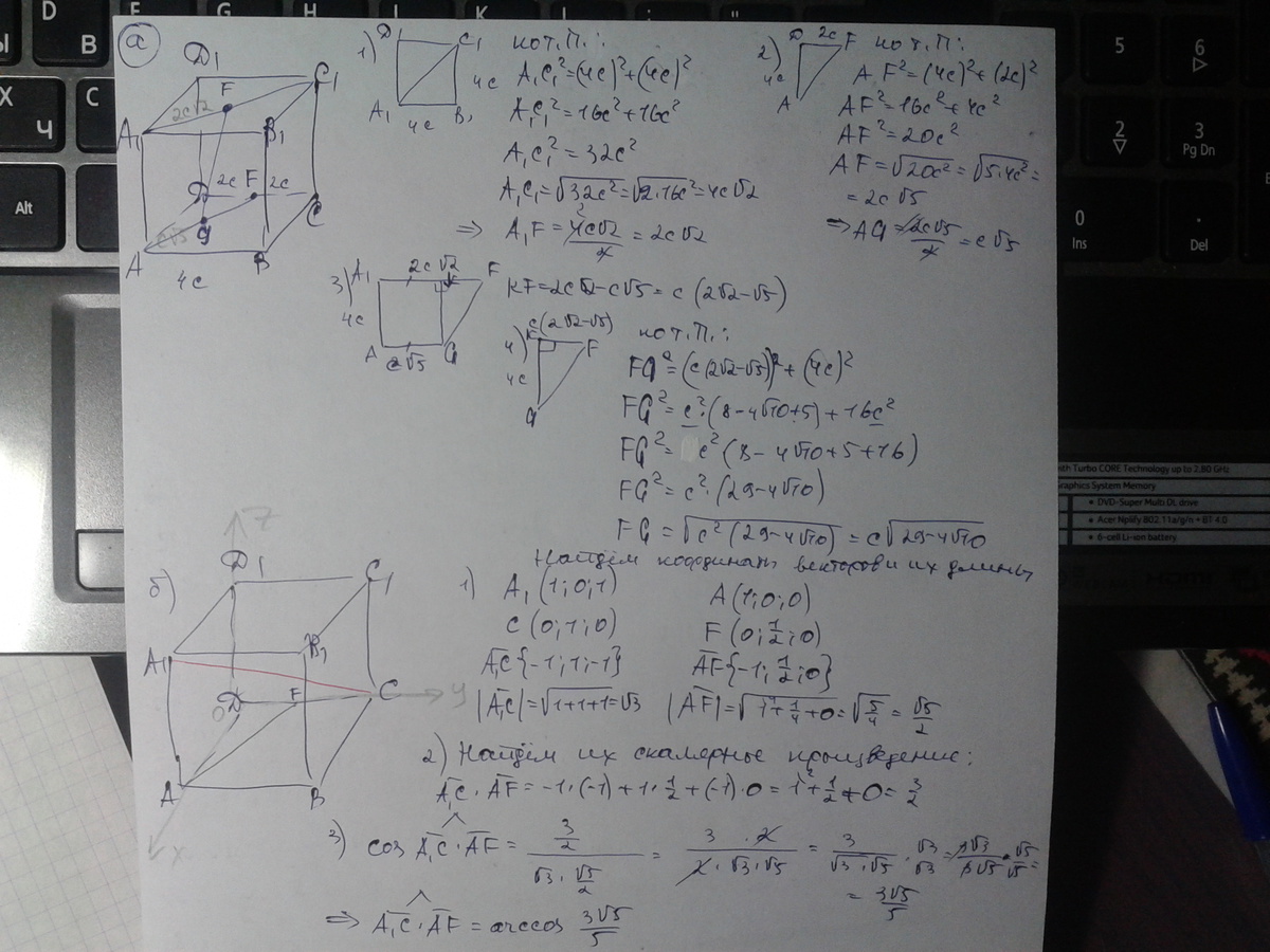 2) Дан куб ABCDA1B1C1D1 с ребром равным 4с, точка F-середина отрезка DC. Найти :