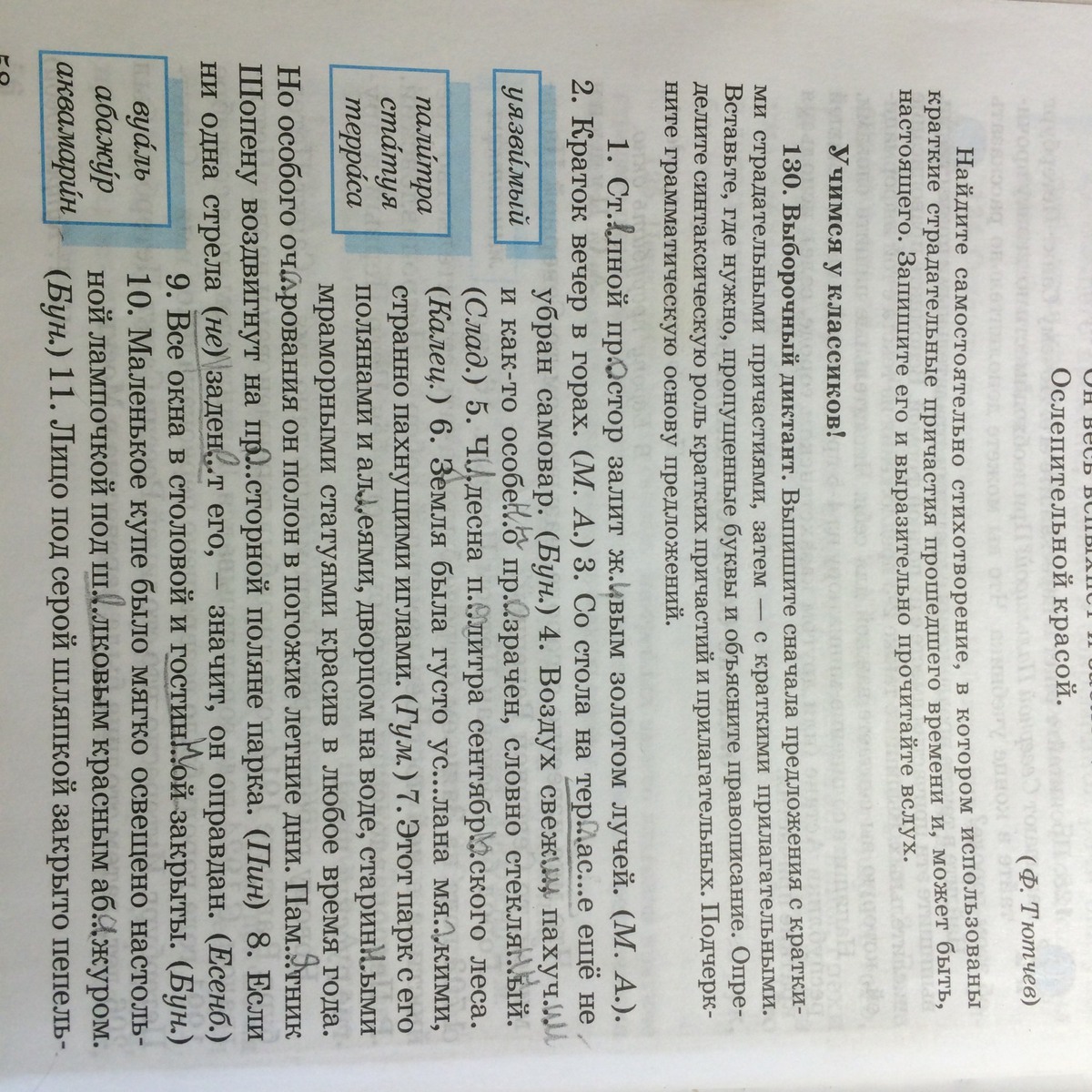 Краткие прилагательные: краток, свеж, пахуч, прозрачен, чудесна, красив, полон.