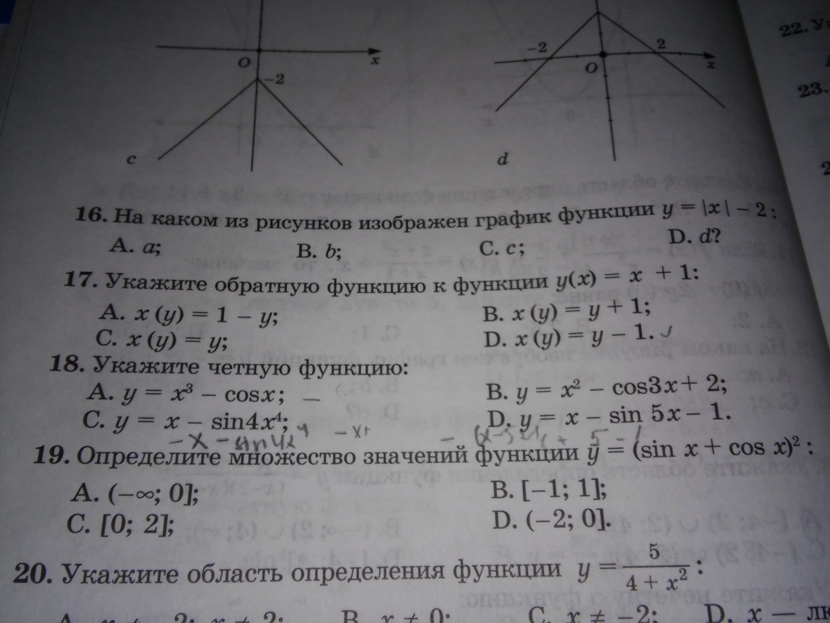 18. Ответ.В) по определению у(-х)=(-х)²-cos(-3х)+2=x²-cos3x+2=y(x)