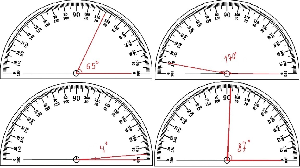 Начертите угол ,градусная мера которого равна:1)38 градусов,2)124 градусов,3)92 градусов,4)90 градусов,5)87 градусов,6)4 градусов,7)170 градусов,8)65 градусов.Определите вид каждого угла