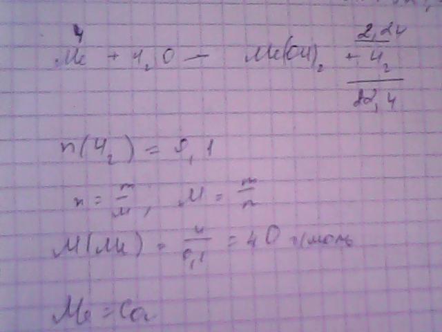 двухвалентный металл массой 4 грамма растворили в воде при этом выделился водород объёмом 2.24 литра.