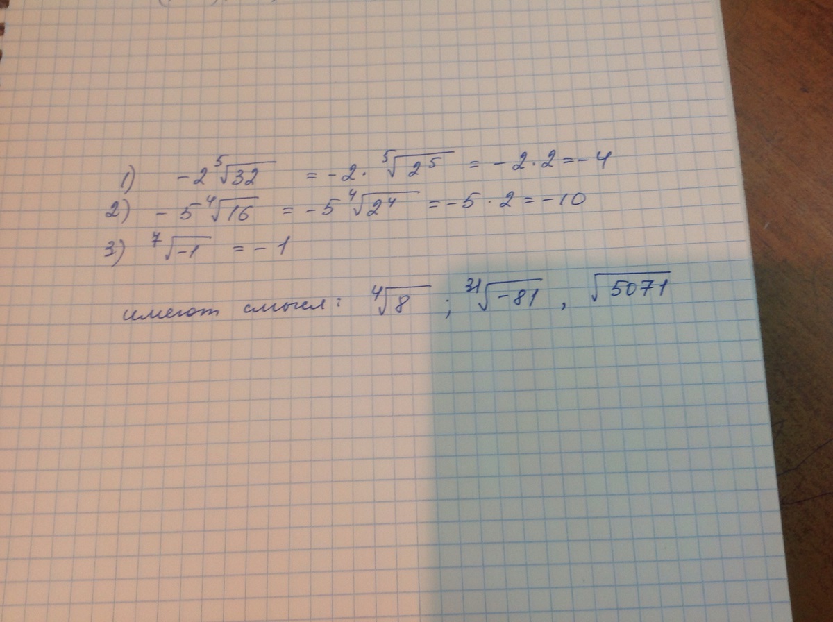 ![1) -2 sqrt[5]{32}; 2) -5 sqrt[4]{16}; 3) sqrt[7]{-1} 1) -2 sqrt[5]{32}; 2) -5 sqrt[4]{16}; 3) sqrt[7]{-1}](https://tex.z-dn.net/?f=1%29+-2+sqrt%5B5%5D%7B32%7D%3B++2%29+-5+sqrt%5B4%5D%7B16%7D%3B+3%29++sqrt%5B7%5D%7B-1%7D+)