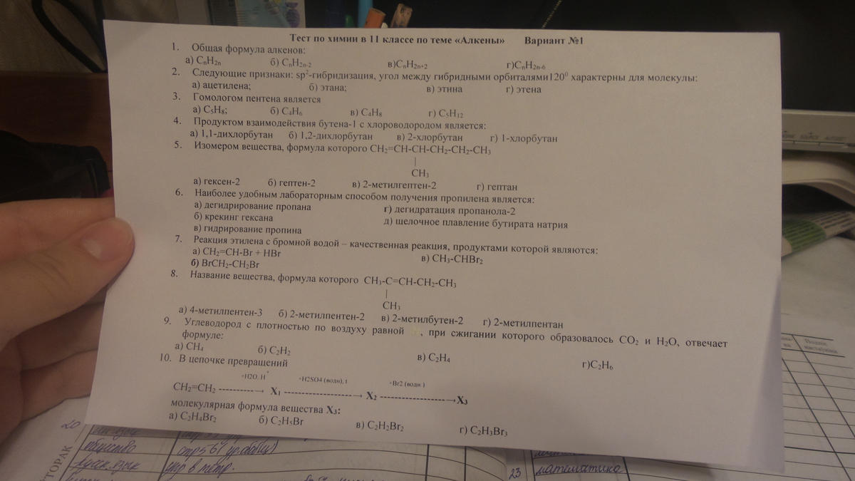 помогите выбрать варианты ответов тест по химии в 11 классе по теме "Алкены"