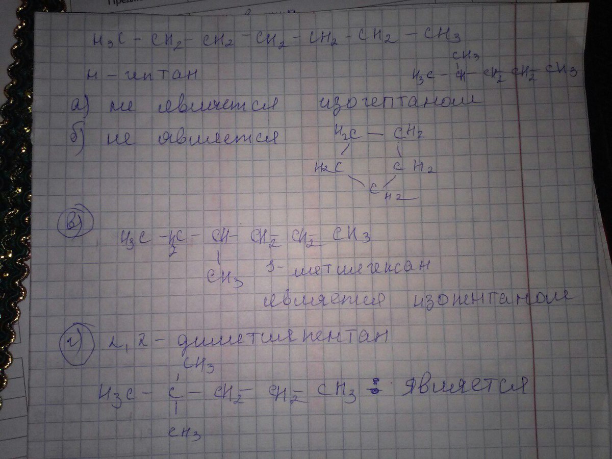 а) 2-метилпентан; б) циклопентан; в) 3-метилгексан; 4) 2,2-диметилпентан
