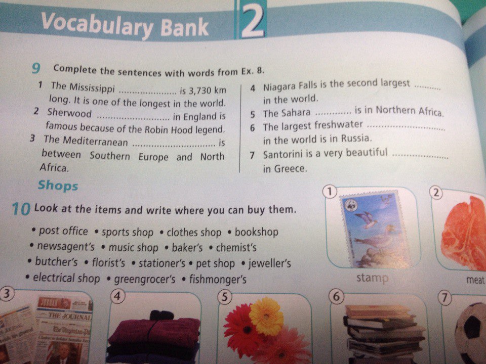 1) river 2) forest 3) sea 4) waterfall 5)desert 6) lake 7) island