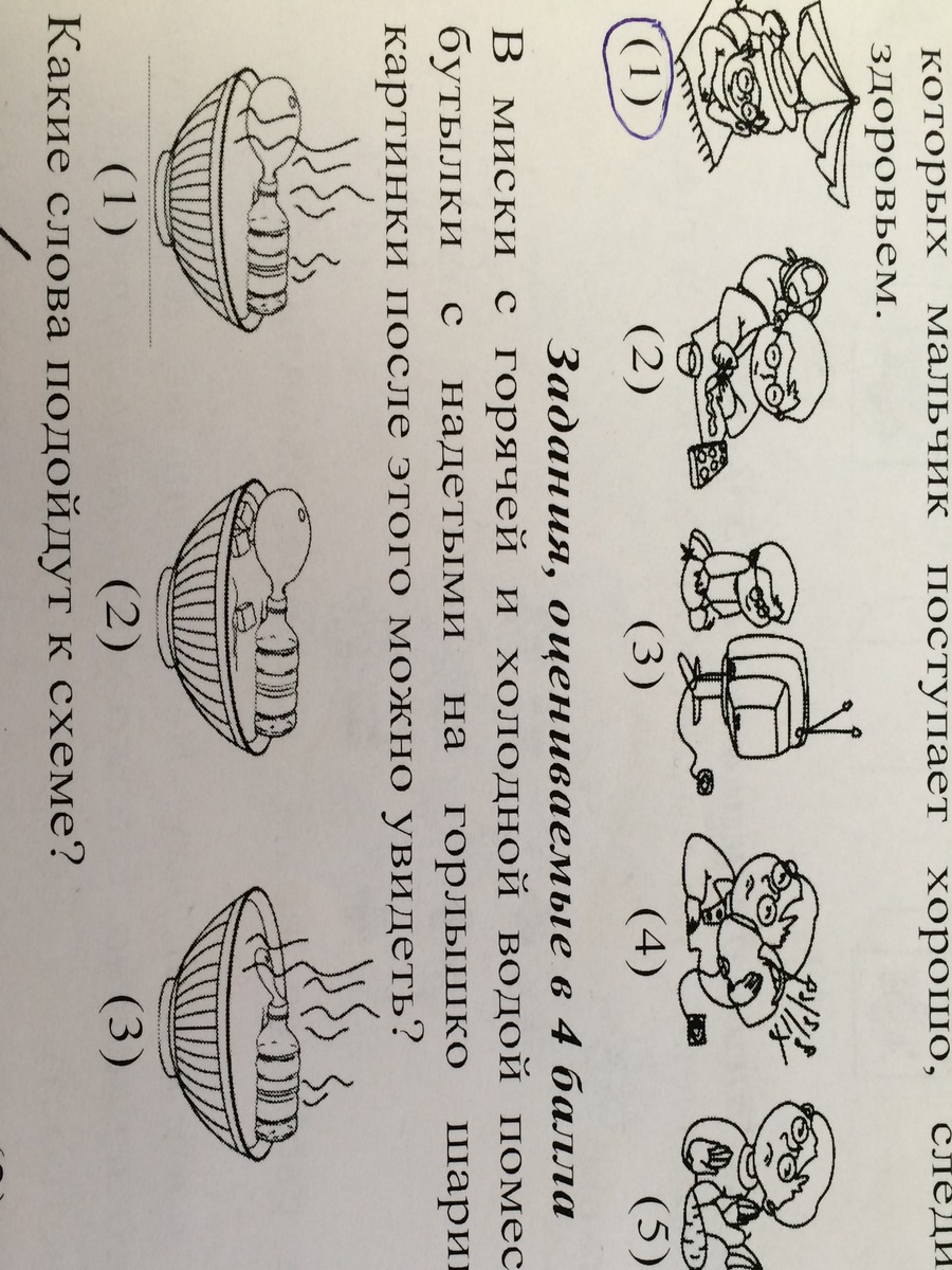 Задание 8. В миске с горячей водой поместили пустые бутылки с надетыми на горлышко шариками. Какие картинки после этого можно увидеть?