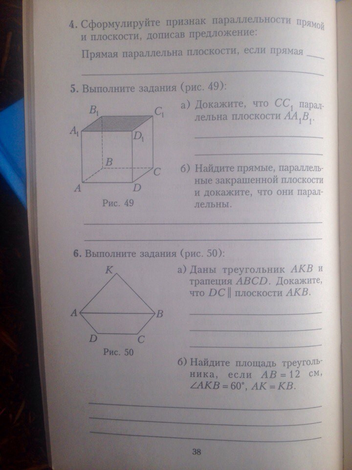* * *Прямая (DC), не лежащая в некоторой плоскости(AKB) и параллельная одной из прямых(AB), расположенных в этой плоскости,сама параллельна этой плоскости * * *