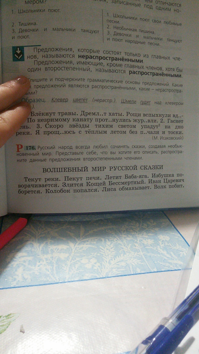 Текут реки кисельные берега. Пекут печи волшебные. Летит Баба-Яга костяная нога. Избушка поворачивается к лесу -задом, а к человеку - передом. Злится Кощей Бессмертный на Ивана Царевича. Иван Царевич борется с Кощеем Бессмертным. Колобок попался в лапы к Лисе. Лиса обманывает усе вокруг. Волк побит крестьянами.