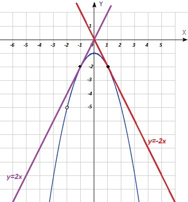 Прямая y = 2x имеет с параболой одну общую точку (-1; -2)