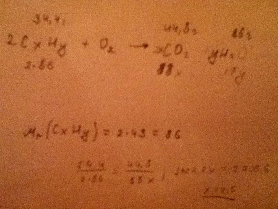 Относительная плотность паров органического соединения по водороду равна 43. При сжигании 34,4 г этого вещества образуется 44,8 CO2 (н.у.) и 36 г воды. Выведите молекулярную формулу органического соединения