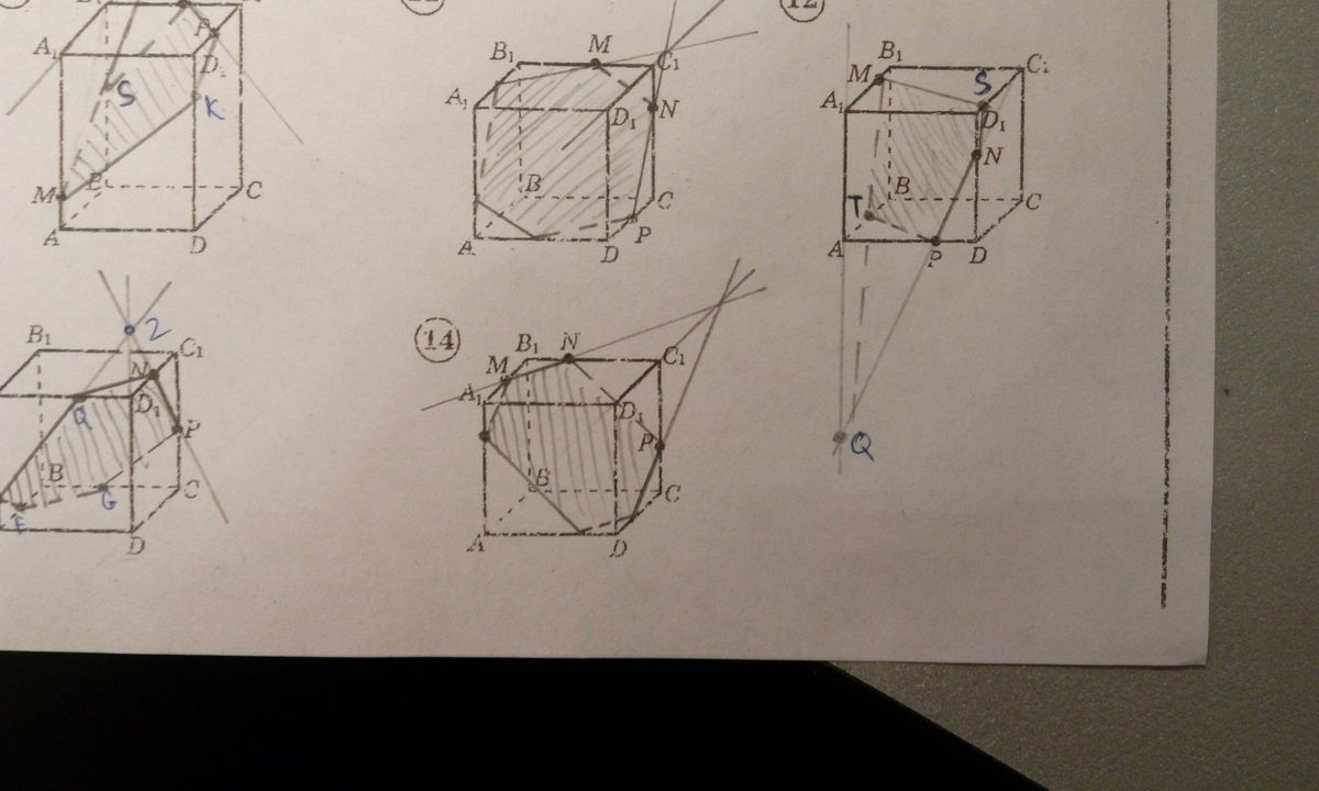 Народ, кто-нибудь понимает в сечении? Если можете помочь, то мне нужно на первой фотке сделать 12-16, а на второй можете посмотреть, правильно ли выполнен 14 номер?