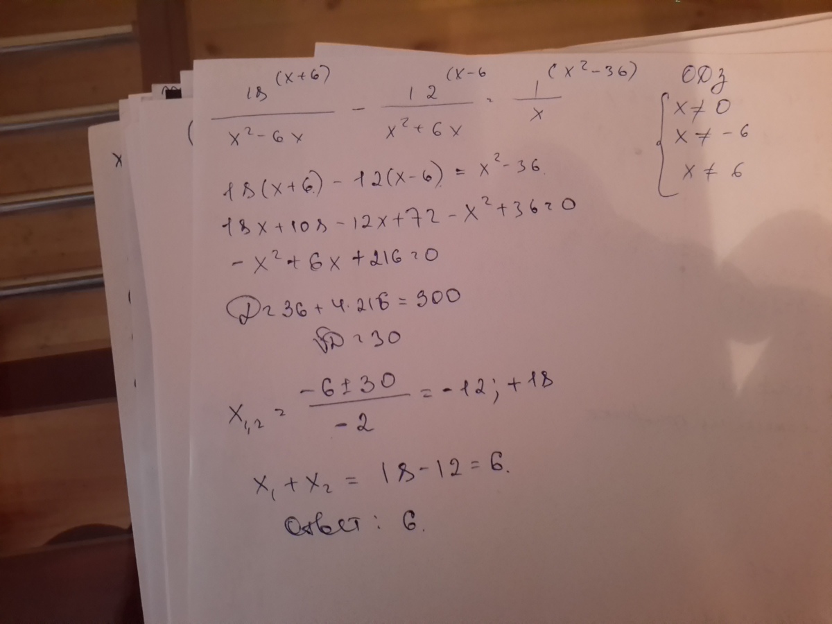 18/(x*(x-6)) - 12/(x*(x+6)) - 1/x = 0