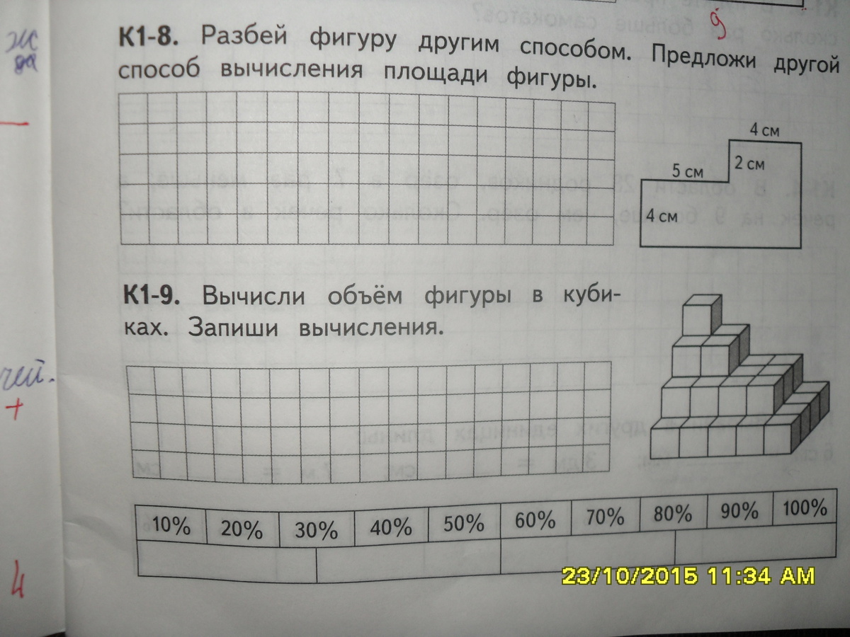 1 задание надо разщбить эту фигуру на 2 части любые зделать плюс и умножить 1 число на другое а 2 задание надо просто умнажать этот 1 куб и сосчитать сколько из всего