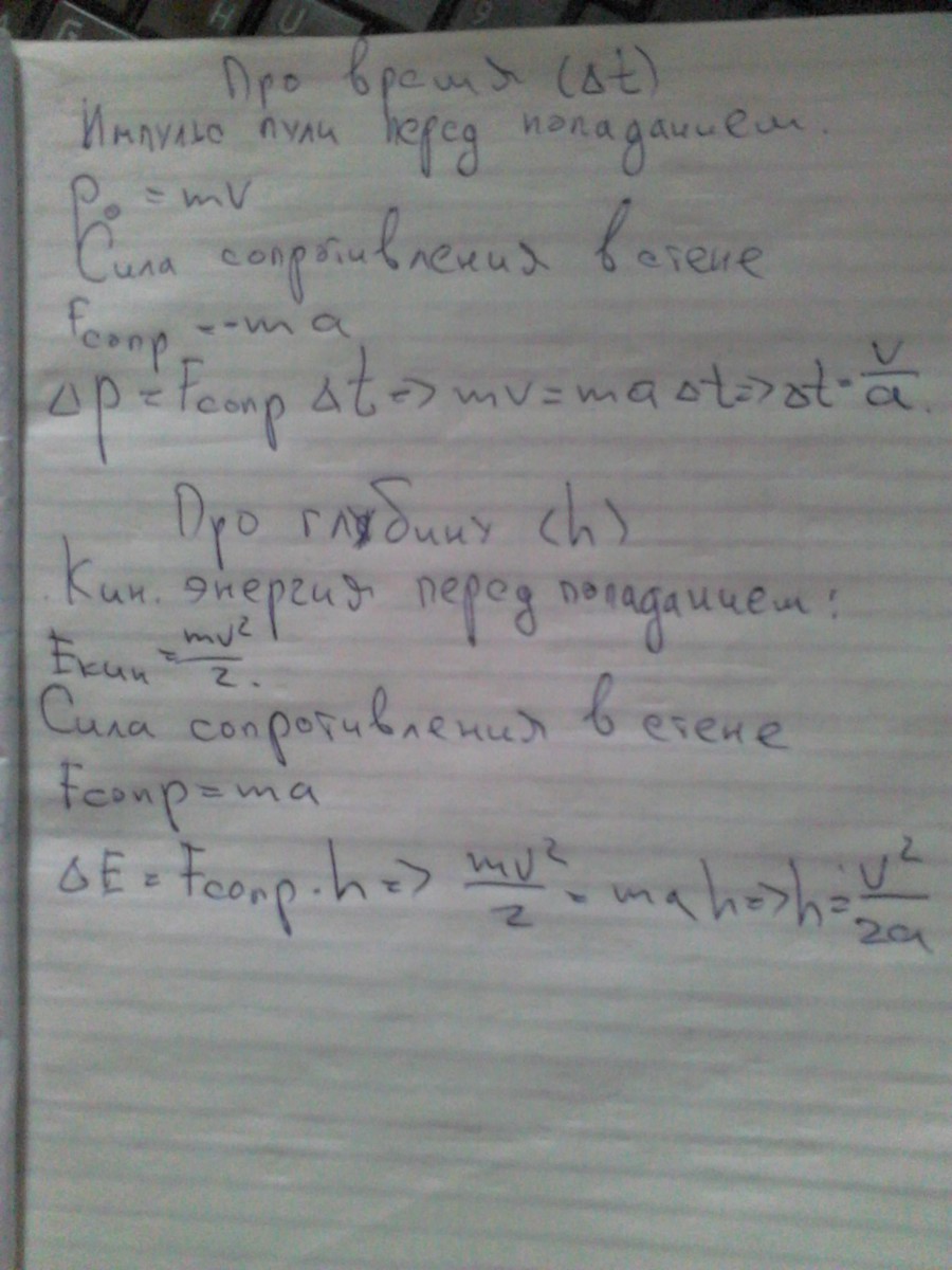 пуля летящая со скоростью 300 м/с попадает в стену и продвигается в ней с ускорением 10^6 м/с^2.На какую глубину проникает пуля в стену? СКолько времени она будет продвигаться в стене