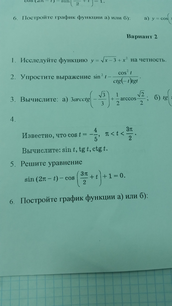 5. sin(2π-t) - cos(3π/2 +t)+1 =0