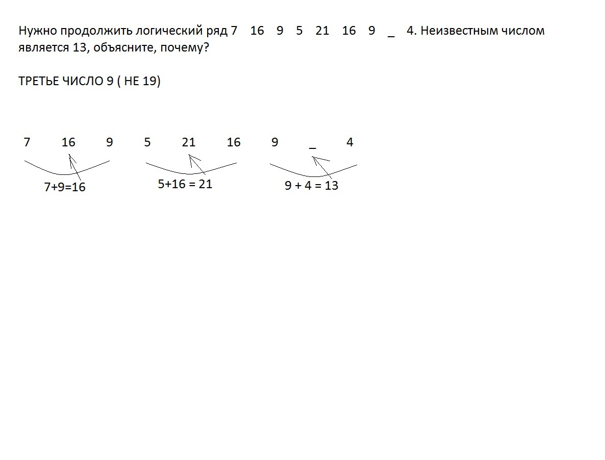 Нужно продолжить логический ряд 7 16 19 5 21 16 9 _ 4. Неизвестным числом является 13, объясните, почему?