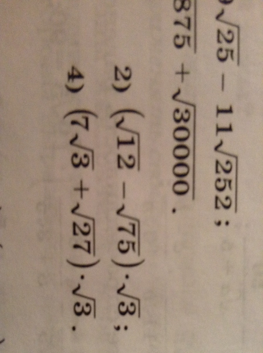 2) (√12 - √75) √3 = √(12*3) - √(75*3) = √36 - √(25*3*3)= 6 - √25 * √9 =
