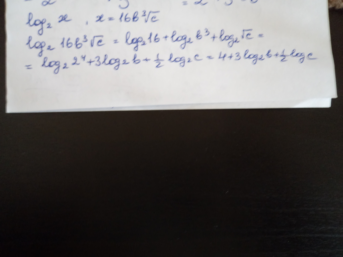 log(2)x=log(2)(16b³√c)=log(2)16+log(2)b³+log(2)√c=4+3log(2)b+0,5log(2)c