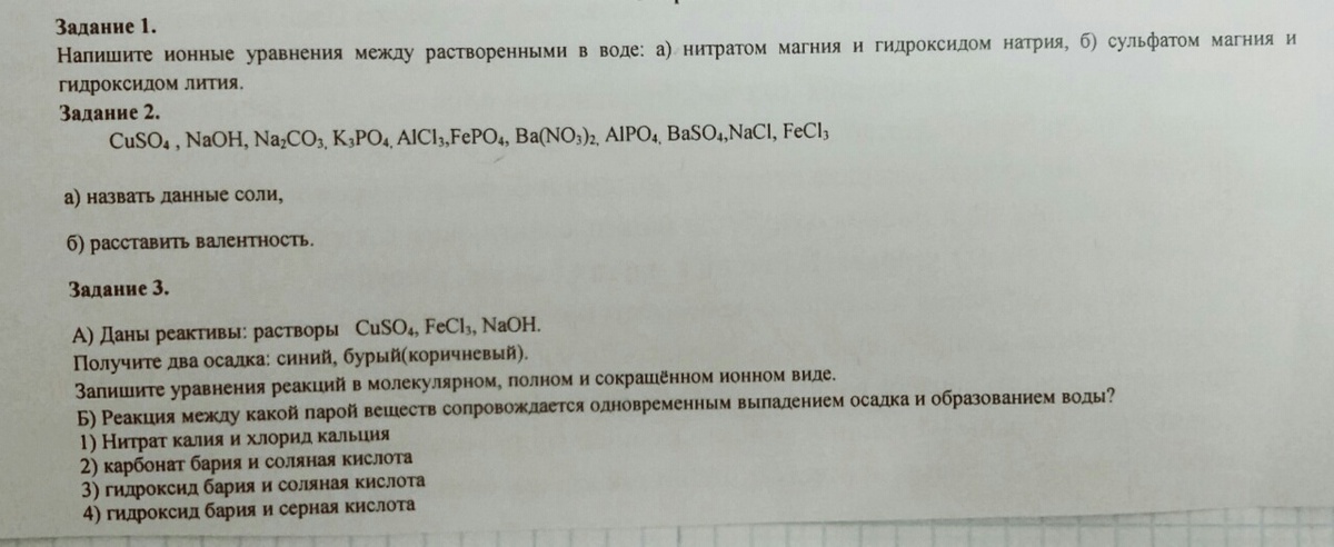 Напишите ионные уравнения между растворенными в воде: а) нитратом магния и гидроксидом натрия; б) сульфатом магния и гидроксидом лития.