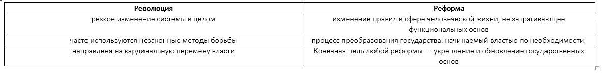 В то время как реформы обычно означают изменения существующей структуры (обычно структуры правительства), революция часто требует полного разрушения и радикального изменения статуса-кво.