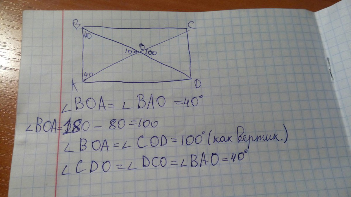 угл СOD =180-40-40=100 градусам