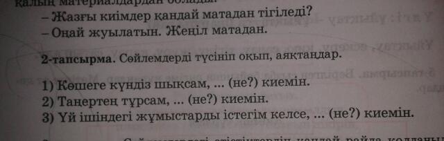 3) уй эшэндегэ жумыстарды эстегэм келсе ..( не?) киемнэн .