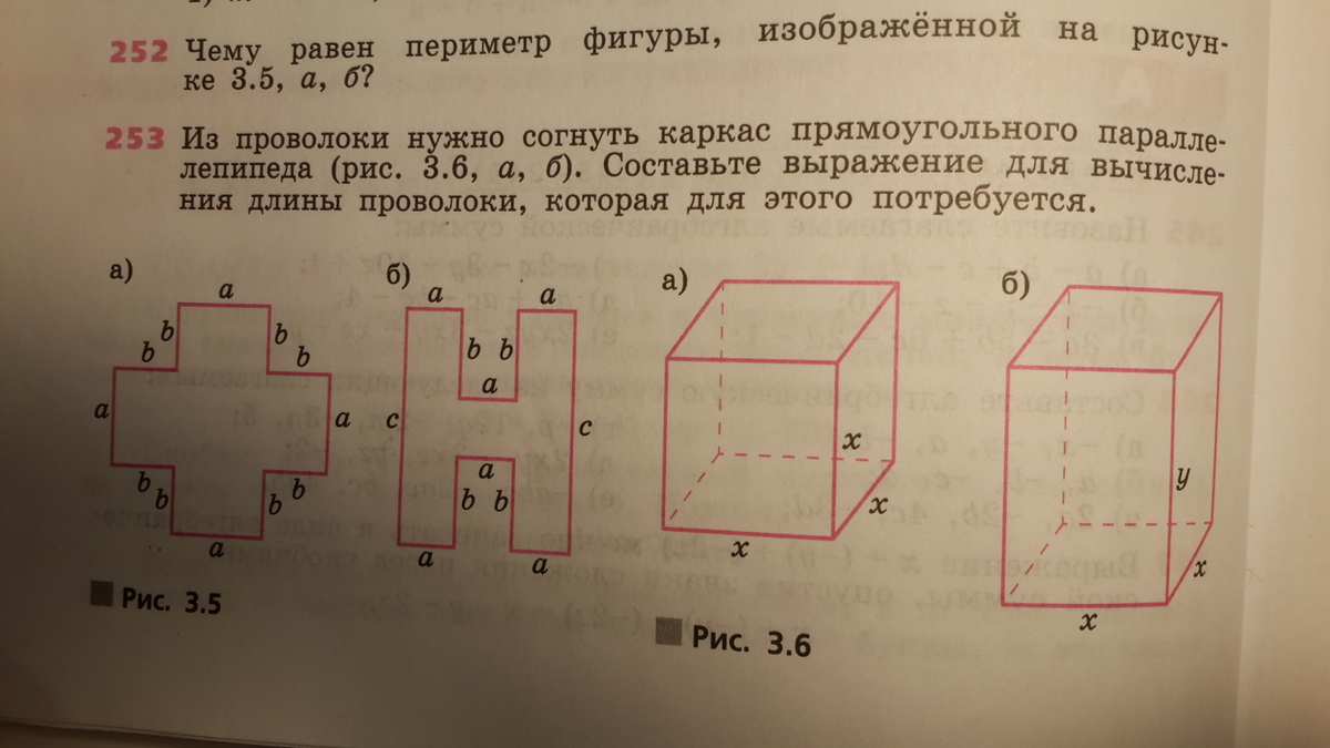 2 Из проволоки нужно согнуть каркас прямоугольного параллелепипеда (рис. 3.6, а, б). Составьте выражение для вычисления длины проволоки, которая для этого потребуется.
