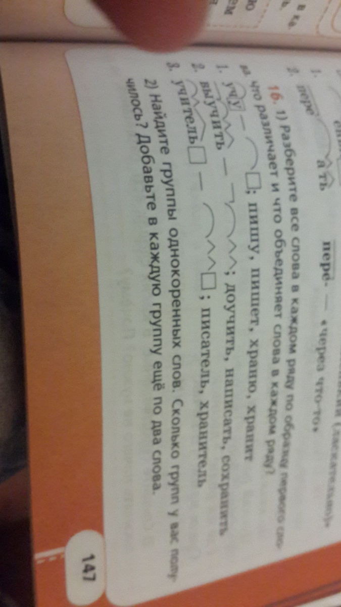 2) Пишу, пишет, написать, писатель - одна группа.
