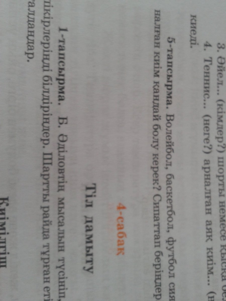 Волейбол, баскетбол, футбол ойындарына арналған арнайы киімдер болады. Олар жеңіл, әрі қозғалуға ыңғайлы болу керек. Бұл ойындар жүгірісті қажет еткендіктен аяқ киімгеде аса көңіл бөлу керек.