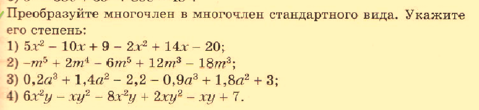 преобразуйте многочлен в многочлен стандартного вида. Укажите его степень.