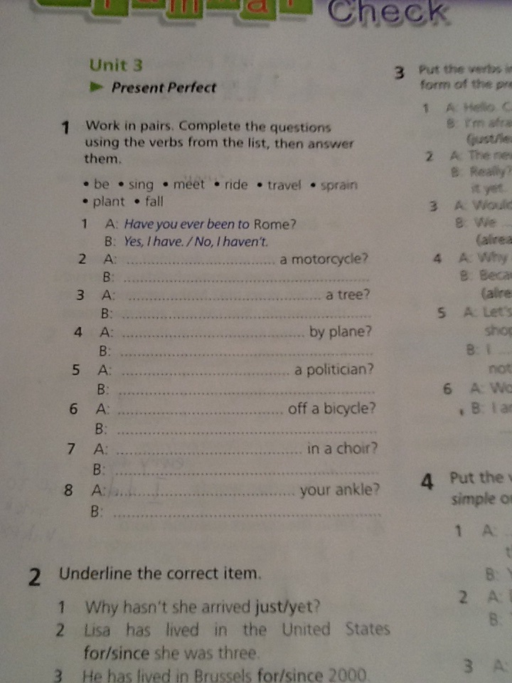 Have you ever sprained your ankle ? Yes I have/No I haven’t