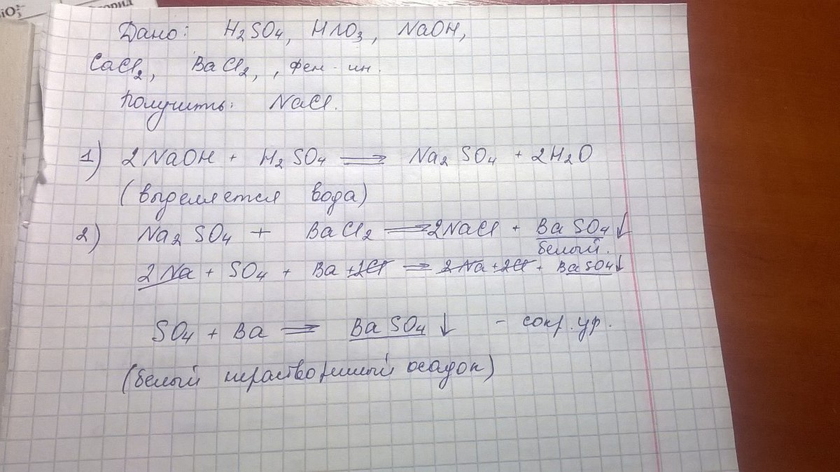 Используя необходимые вещества только из этого списка, получите в резуль- тате двух последовательных реакций раствор хлорида натрия.