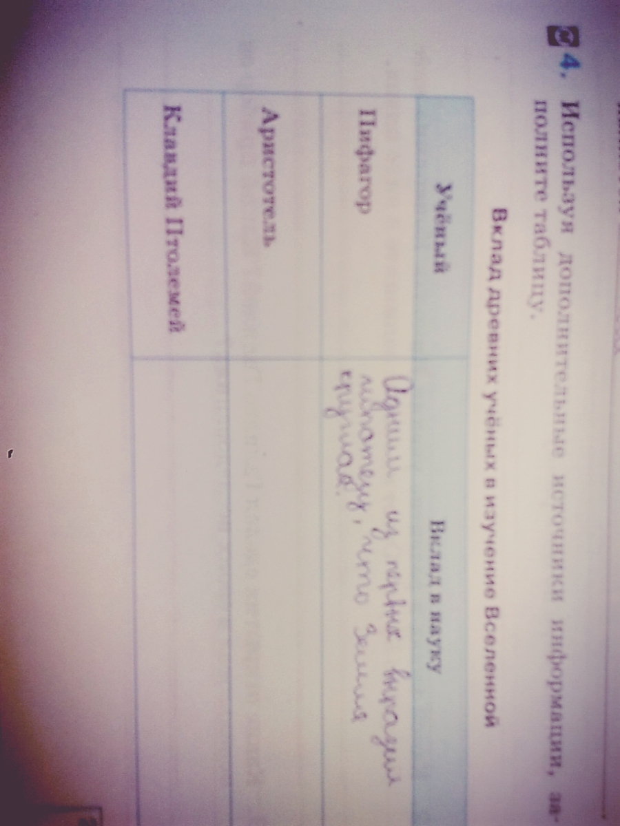 Клавдий Птолемей (ок. 90-160н. э) он разработал свою систему мира, в центре которой, как и Аристотель поместил землю. Вокруг не подвижной шарообразной Земли, по мнению Птолемея, движутся-Луна, Солнце, (и 5 известных в то время планет) это-Юпитер, Венера, Меркурий, Марс и Сатурн а так же сфера неподвижных звезд.