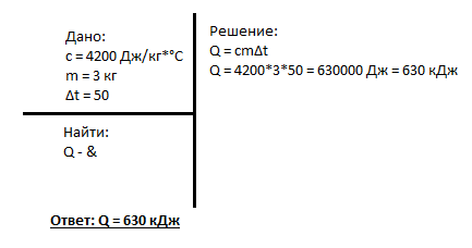 какое количество теплоты отдал окружающей среде кипяток массой 3 кг при остывании до 50 градусов