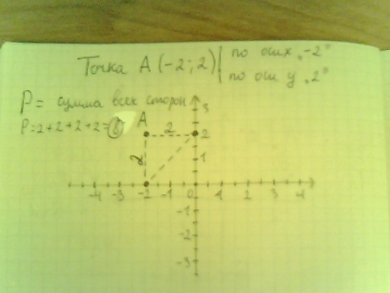 найдите периметр прямоугольника,образованного координатными осями и перпендикулярами,опущенными точки А(-2;2) на координатные оси,,,,,,ответ должен быть 10