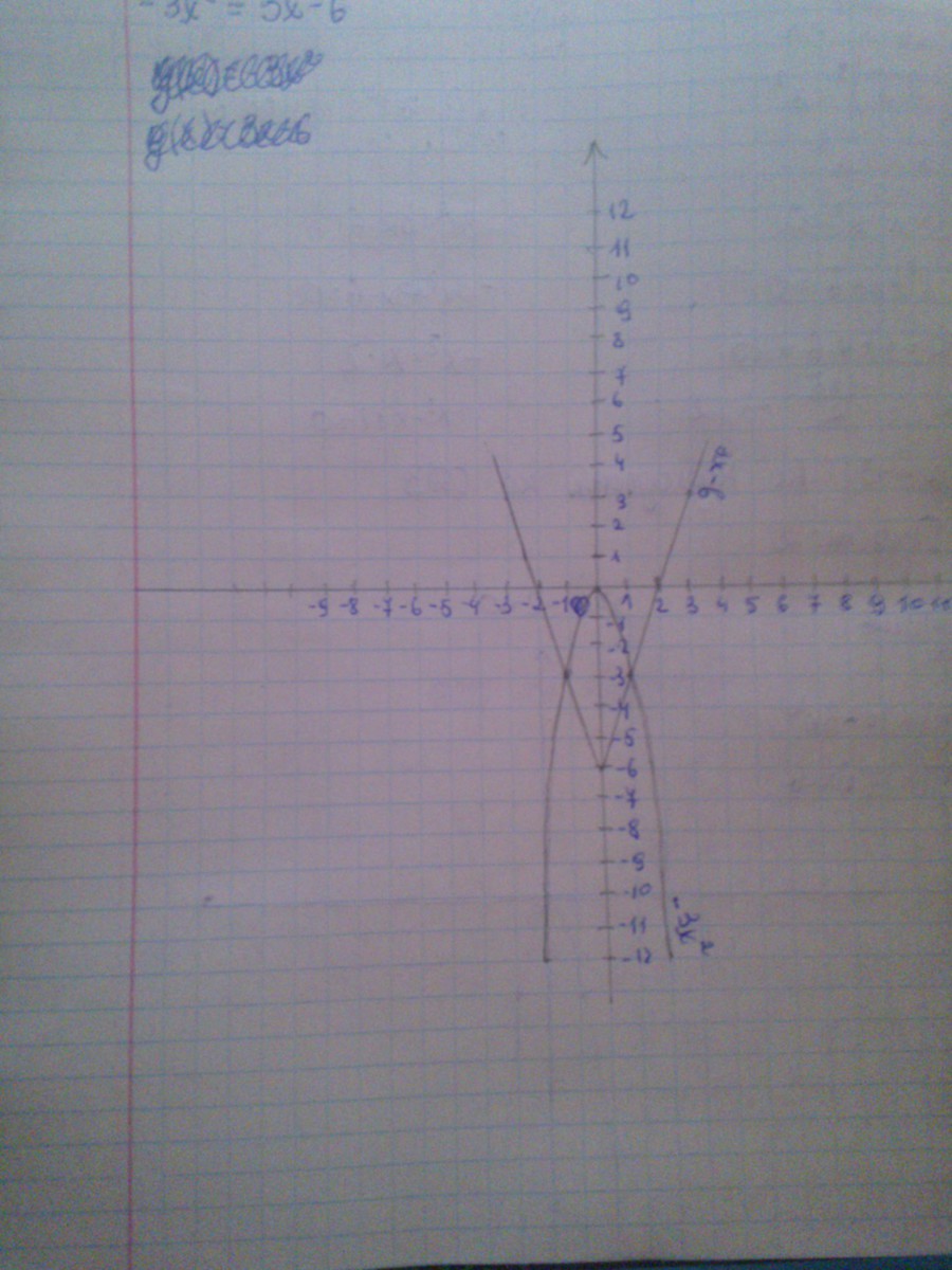 Графическим способом реши уравнение −3x2=3x−6. (Корни уравнения запиши в возрастающем порядке, если корней нет, поставь −)