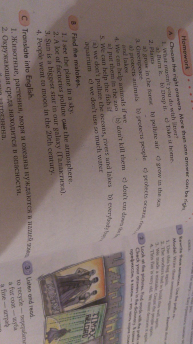 я думаю, что во втором grow in the sea тоже правильно. Ну растения могут расти как в лесу, так и в воде. в том задании грамматики нет, по смыслу надо. а за б задание я уверена