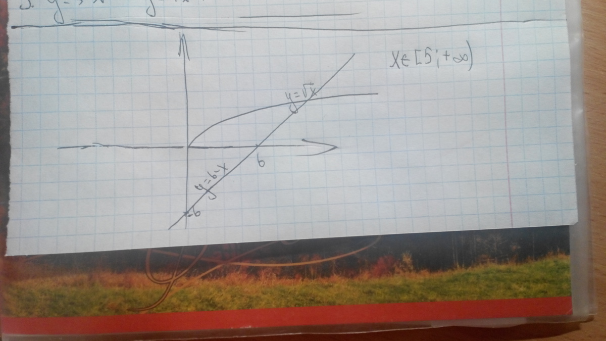 Постройте на одной координатной плоскости графики функций у=√х и у=6-х. Выясните,при каких значениях х значения функции у=√х больше функции у=6-х