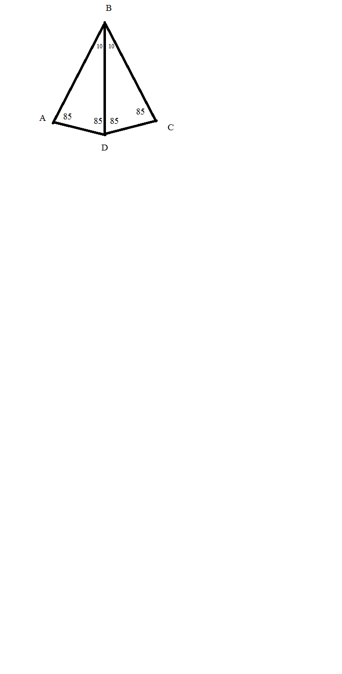 (180°-10°):2=85° - <B= <C= < ADB= <ADC