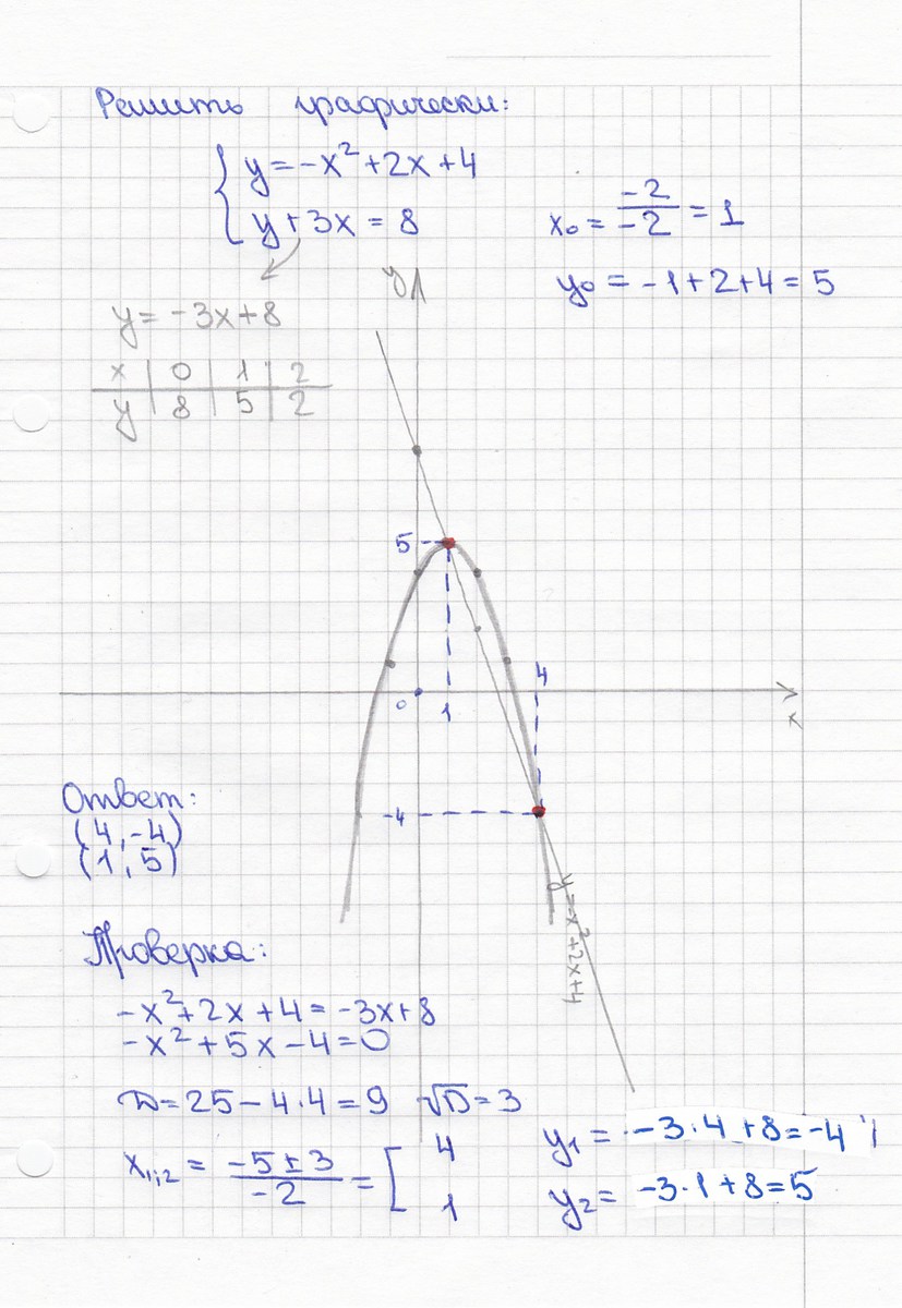 Строишь график первого уравнения, строишь график второго, находишь точки пересечения, это и будет решение системы