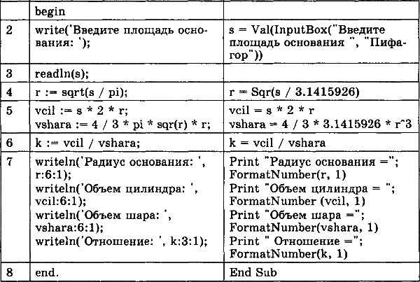 На памятнике Пифагору высечен чертеж вписанного в цилиндр шара, так как Пифагор нашел соотношение между их объемами. Современный почитатель гения Пифагора решил создать объемный памятник в честь этого открытия. Городские власти определили статус памятника — скульптура малой формы, и выделили для него небольшую площадь. Требуется рассчитать объем цилиндра и вписанного в него шара по заданной площади основания памятника (цилиндра) и убедиться в правильности выведенного Пифагором соотношения.