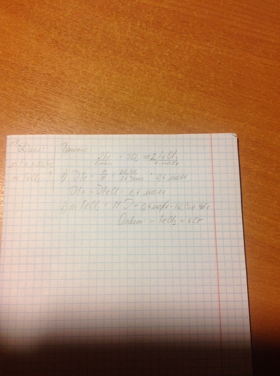 1.железо массой 22,4 г реагирует с хлором. Вычислите массу продукта реакции. 2Fe + 3Cl2 = 2FeCl3