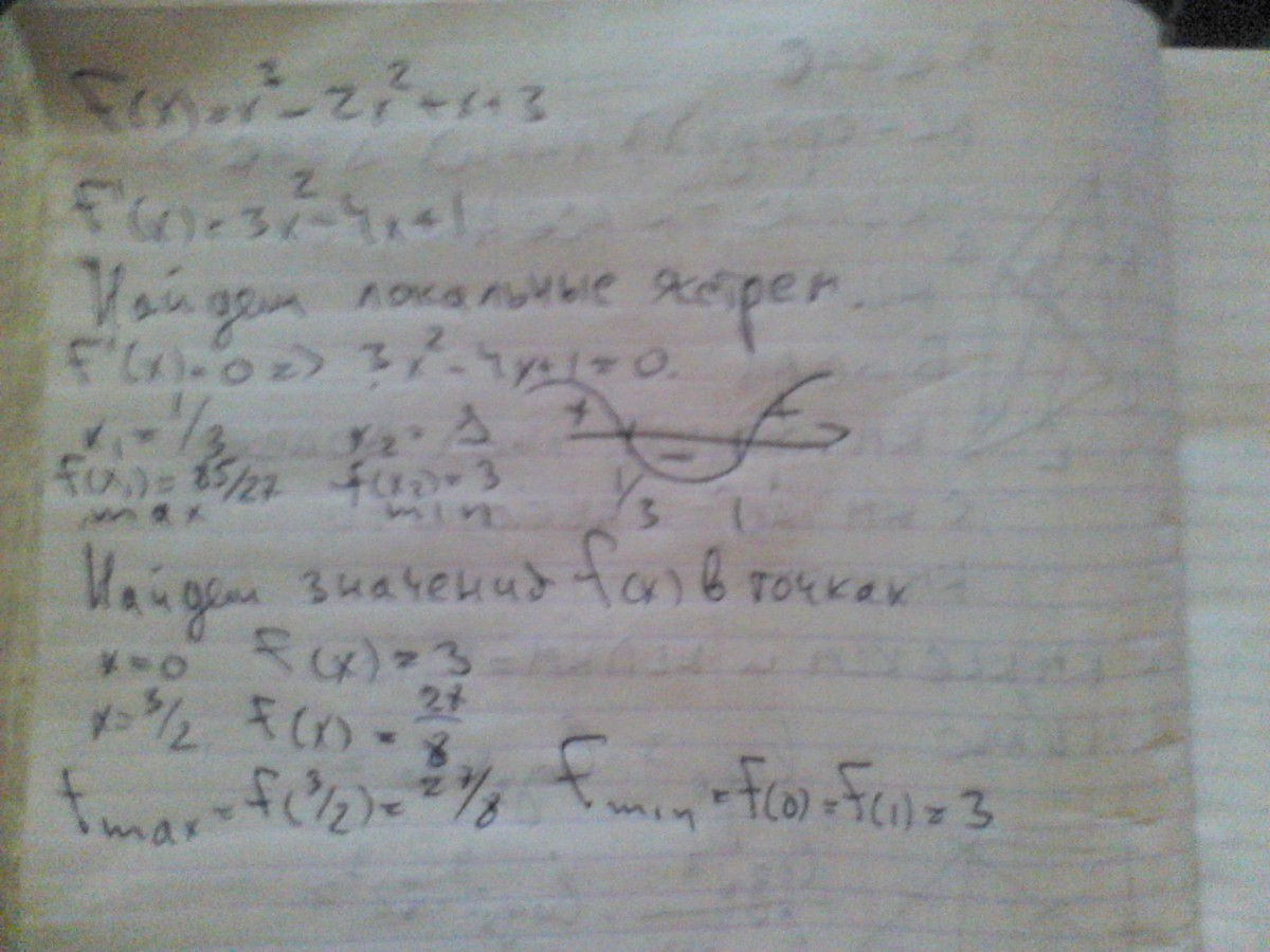 f(x)=x^3-2x^2+x+3, промежуток [0;3/2]; f'(x)=3x^2-4x+1;