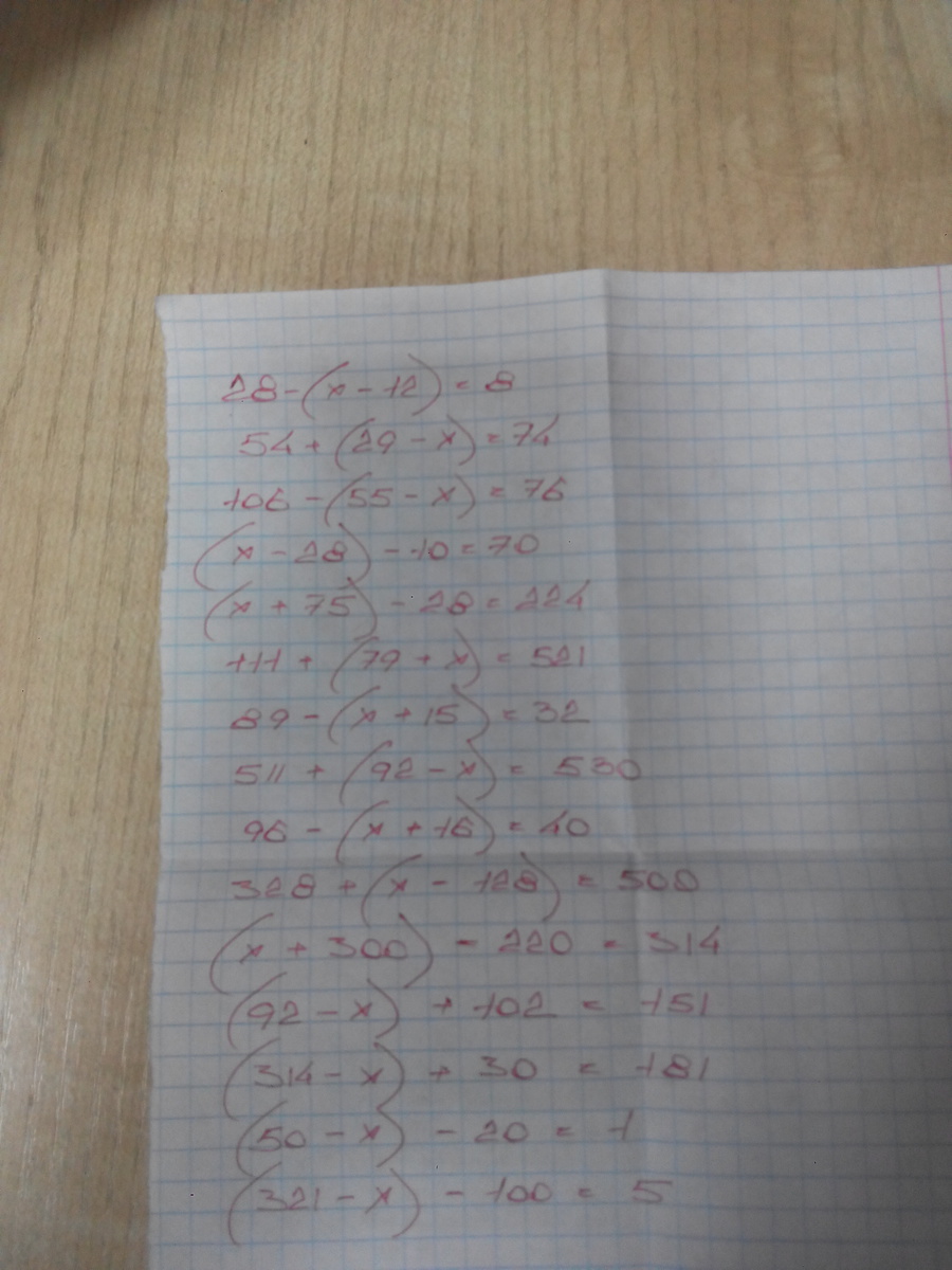 28-(х-12)=8, 54+(29-х)=74 106-(55-х)=76 (х-28)-10=70