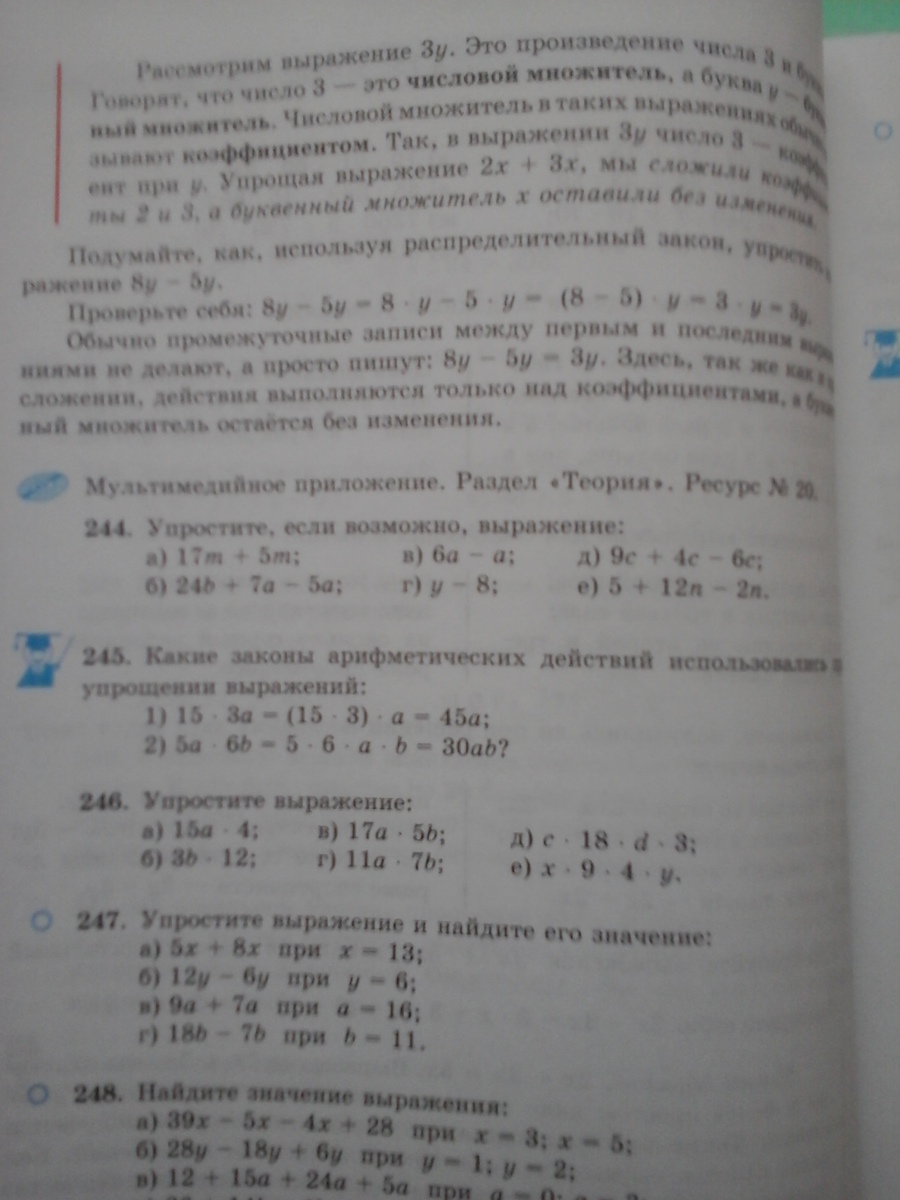 б) 24b+ 2a г) y – 8. е) 5 + 10n