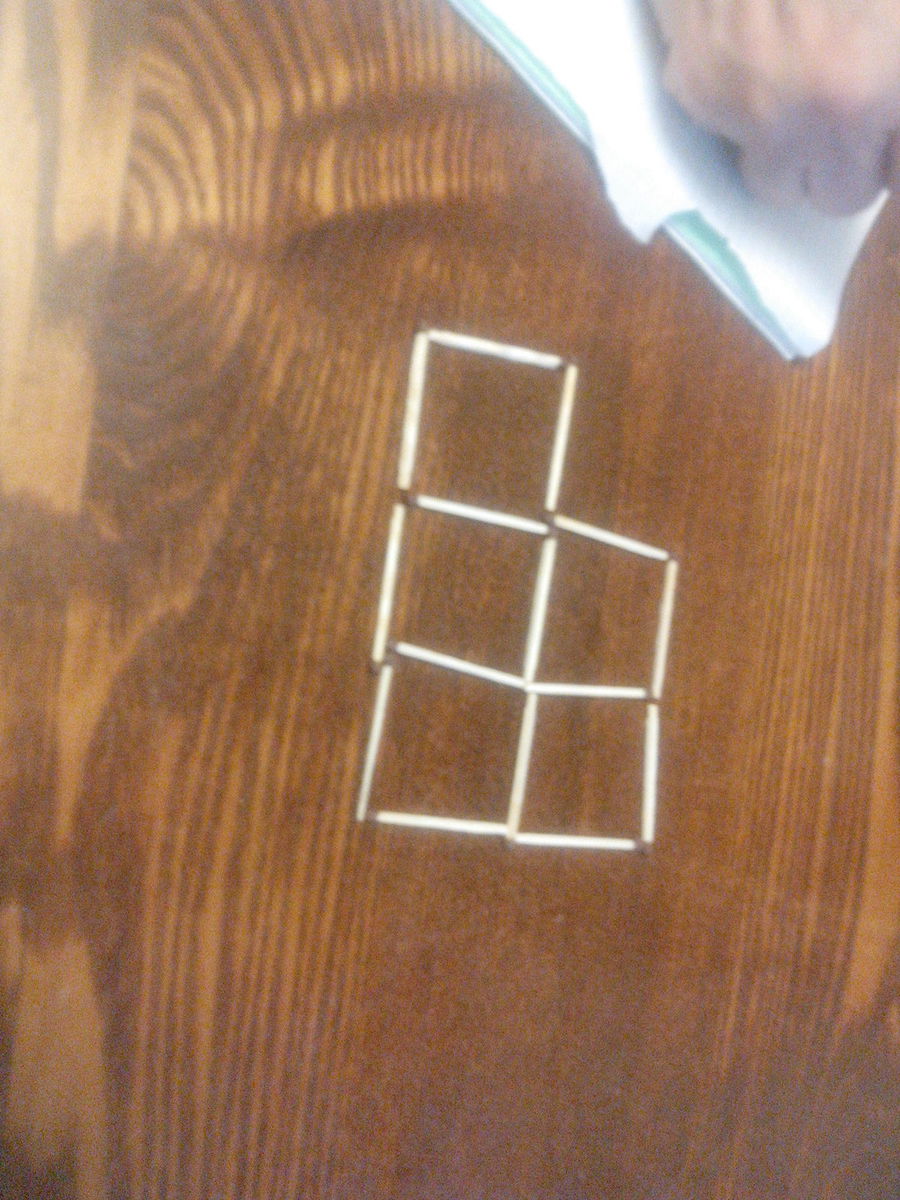 из большого квпдрата там дле всередине 4 спички убери любые две которые образовывают угол