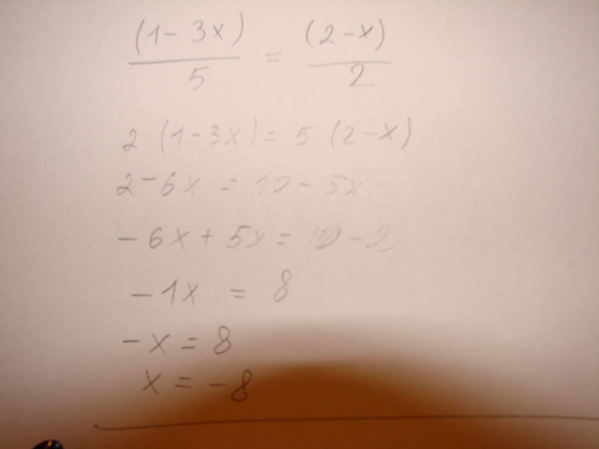 2) (1-3x):5=(2-x):2 ответ -8 но нужно решение помогите очень прошу